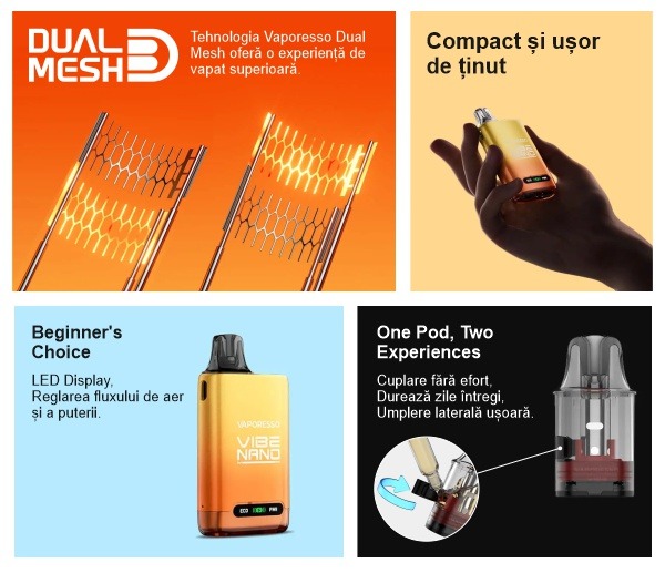 El Vaporesso Vibe Nano es el compañero ideal para quienes buscan una experiencia de vapeo sencilla, compacta y potente. Diseñado especialmente para principiantes, ofrece una operación intuitiva y sin complicaciones. Gracias a la innovadora tecnología Dual Mesh de Vaporesso, proporciona un sabor más intenso, mejorado en un 25%, con un aroma 40% más potente gracias al sistema HyperFlow, que garantiza una absorción instantánea y una calada constante y placentera.